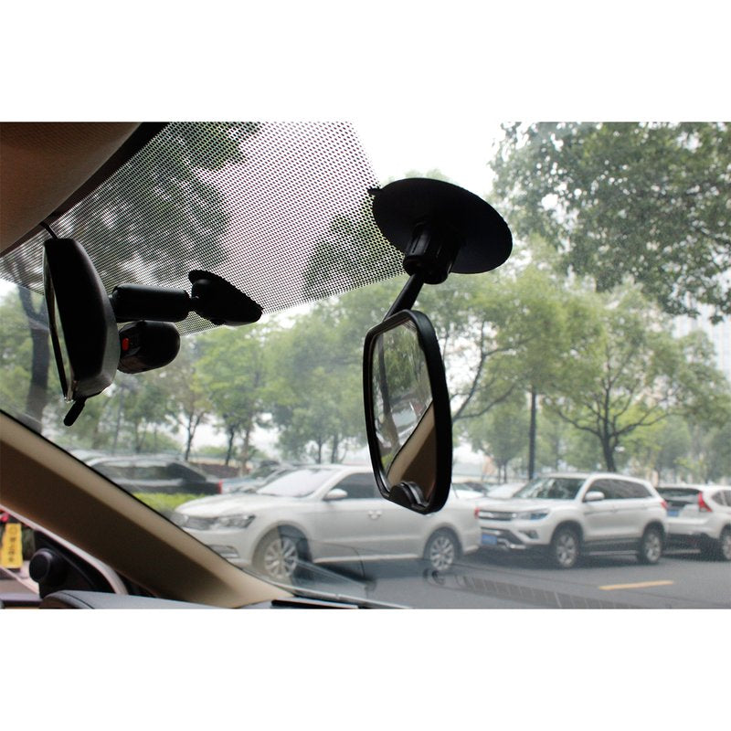 Oglinda auto retrovizoare, Petite&Mars, Rotativa 360 Oskar, Cu montare pe parbriz si la parasolare, 10 x 7 cm, Negru