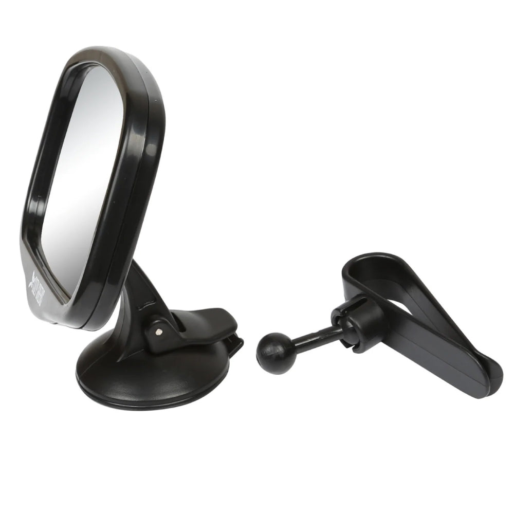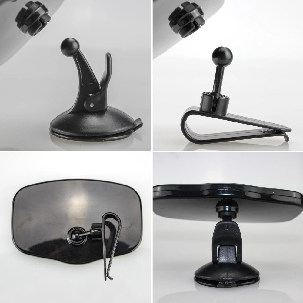 - Oglinda retrovizoare Ezimoov Mini poate fi folosita fie cu ventuza pe parbriz, fie cu clema pentru prindere pe parasolar.