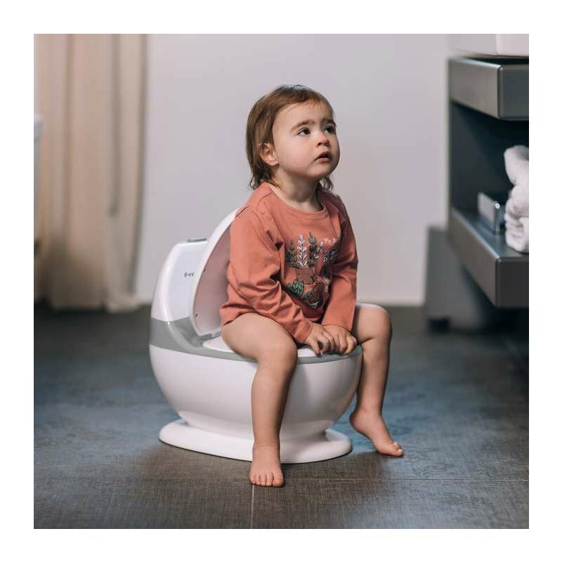 Olita educativa, FreeON, Trainer, Minitoaleta, Cu spatiu pentru hartie/servetele, Cu sunet realist de tras apa, Pana la 25 kg, 3 ani+, White/Grey