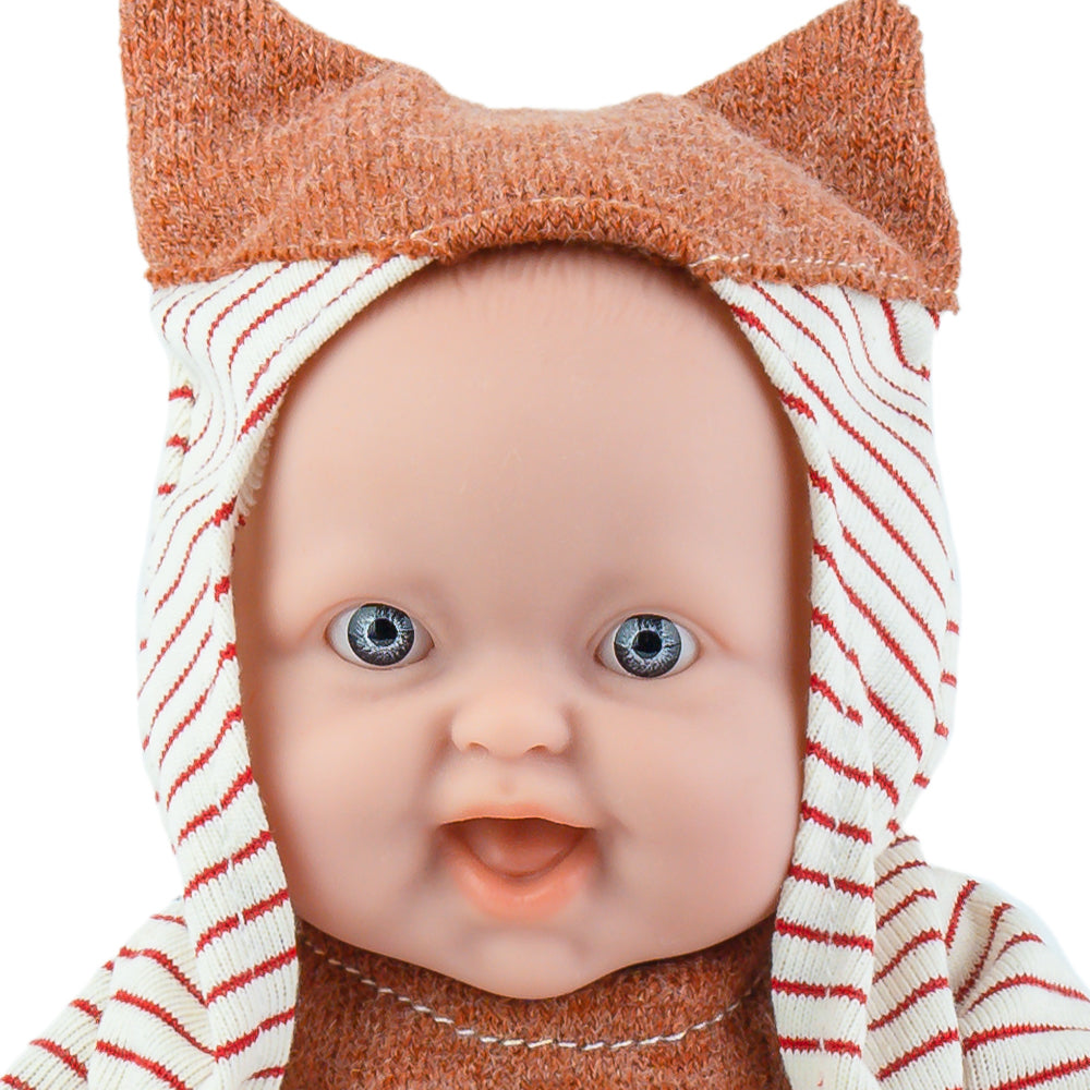 Simpatica papusa este realizata manual, cu detalii realiste fine si ochi atractivi. Designul hainutelor si imprimeul vulpe transforma micuta papusa intr-un personaj simpatic.
