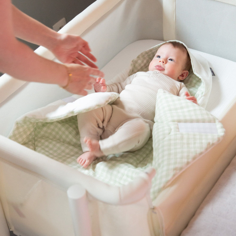 Paturica moale cu gluga poate fi folosita la infasat, va mentine copilul cald si confortabil. De asemenea, paturica Childhome poate fi folosita in siguranta intr-un carucior sau balansoar. Include orificii pentru inserarea centurilor de siguranta.