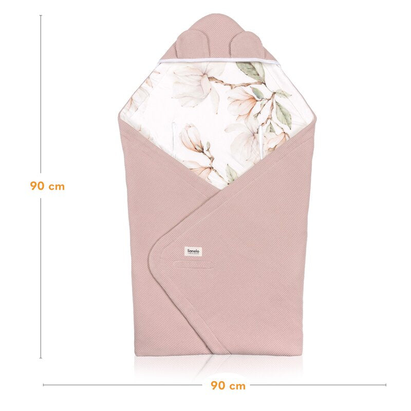 Paturica de infasat, Lionelo, Pentru scoica auto, carucior si landou, Cu multiple utilizari, Cu inchidere arici velcro, Dimensiune 90x90 cm, Din bumbac, TOG 2.5, 12-18 luni, Bej