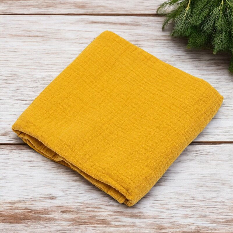 Paturica moale bebe, New Baby, Cu multiple intrebuintari, 60x60 cm, Din muselina, 100% bumbac, Mustard
