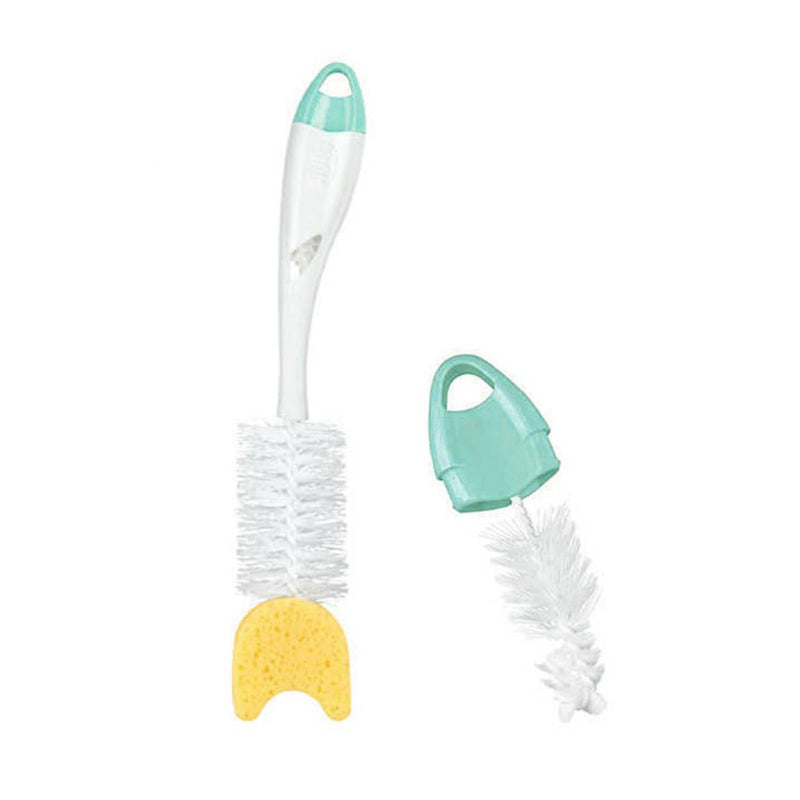 Perie cu burete Nuk 2 in 1 pentru biberoane si tetine, cu mini perie integrata in maner.