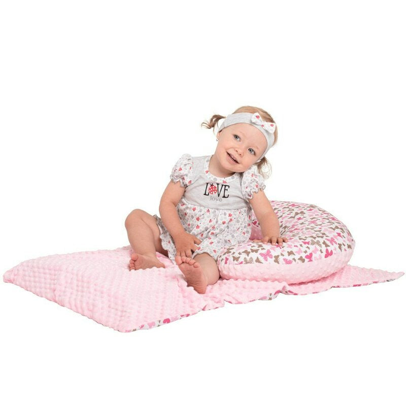 - Primul este un material foarte moale si placut la atingere, tesatura Minky, cu mici proeminente care stimuleaza abilitatile senzomotorii, iar al doilea este bumbac 100% cu desene si modele originale, care ajuta bebelusii sa descopere lucruri noi si sa isi dezvolte imaginatia.