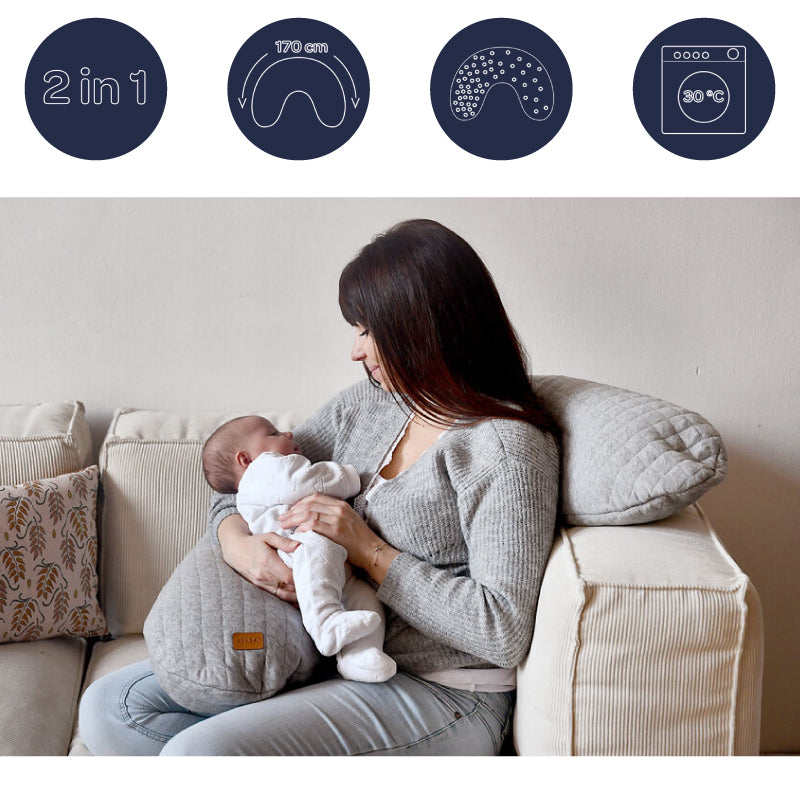 Caracteristici Perna gravida Beaba Big Flopsy 170 cm Fleur de Coton Heather Grey: