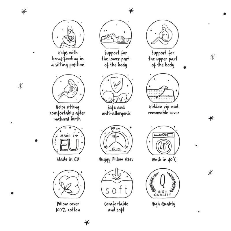 Perna a fost conceputa pentru a raspunde nevoilor mamelor care isi doresc un produs functional, confortabil si usor de integrat in rutina zilnica. Cu un design ergonomic si dimensiuni bine gandite, aceasta perna ofera sustinere eficienta atat in perioada sarcinii, cat si dupa nastere, fiind potrivita inclusiv pentru deplasari si calatorii.
