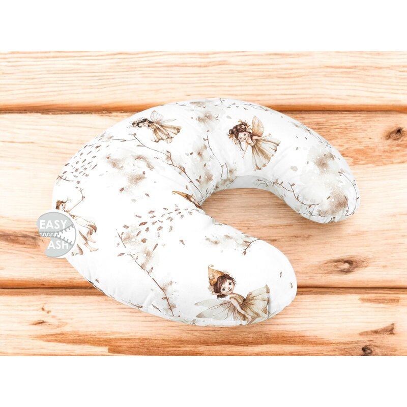Perna pentru alaptat, MimiNu, Din bumbac certificat Oeko Tex Standard 100, Cu husa detasabila, Cu fermoar securizat, Circumferinta 155 cm, Fairy