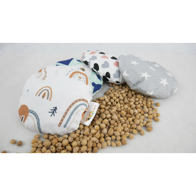 Pernuta anticolici, Qmini, Umpluta cu samburi de cirese, Cu husa din bumbac, Diametru 14 cm, Grey Stars
