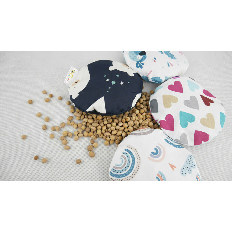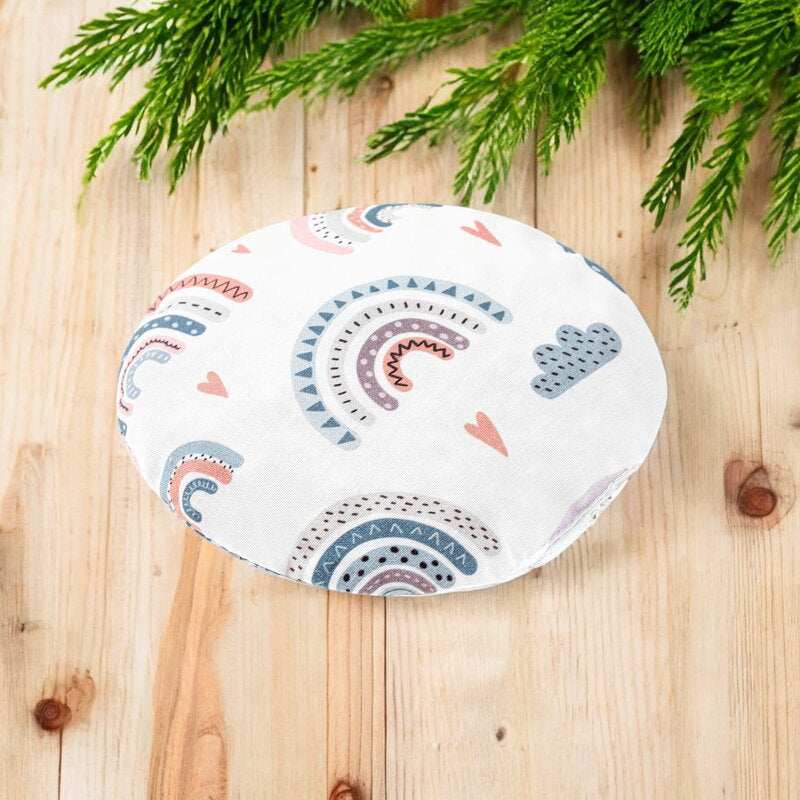 Pernuta anticolici, Qmini, Umpluta cu samburi de cirese, Cu husa din bumbac, Diametru 14 cm, Rainbow