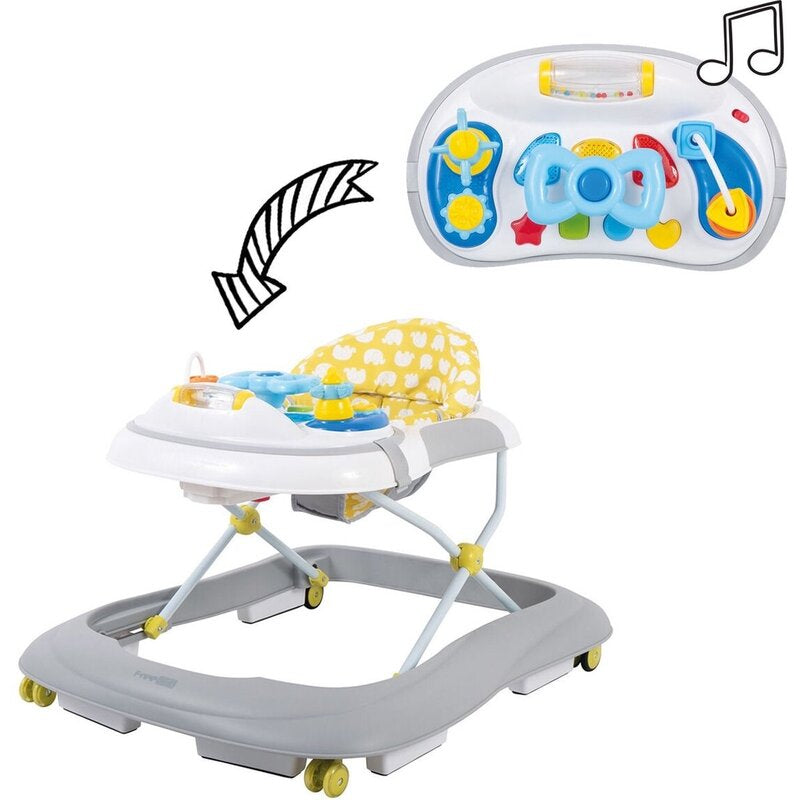 Premergator, FreeON, Little Driver, Pliabil, Cu sunete si lumini, Inaltime reglabila in 3 pozitii, 6 luni+, Gri/Galben