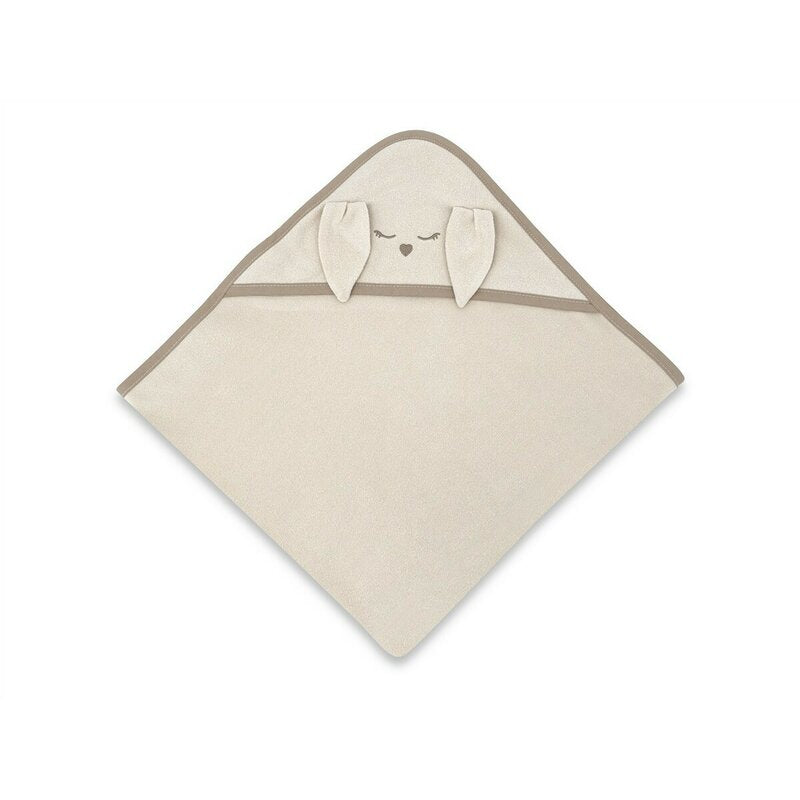 Prosop cu gluga, Qmini, Mare, Cu broderie si urechi, Dimensiune 100x100 cm, Din tricot termo-terry din bambus, Materiale certificate Oeko Tex Standard 100, Rabbit Beige