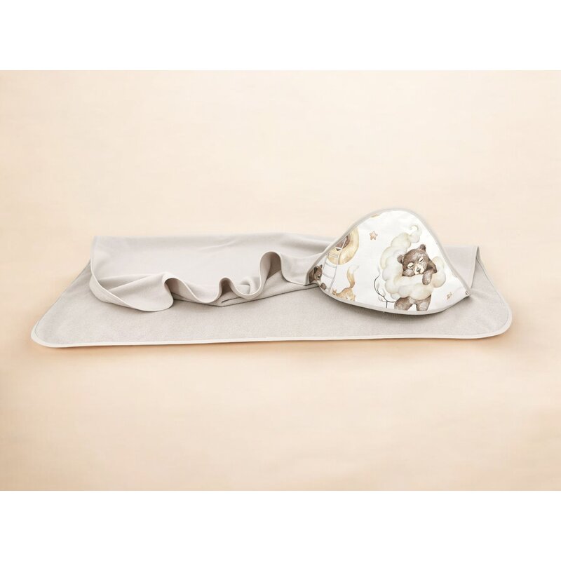 Prosop cu gluga, Qmini, Mare, Dimensiune 100x100 cm, Din bumbac si thermo fleece, Materiale certificate Oeko Tex Standard 100, Teddy Bear and Friends Beige