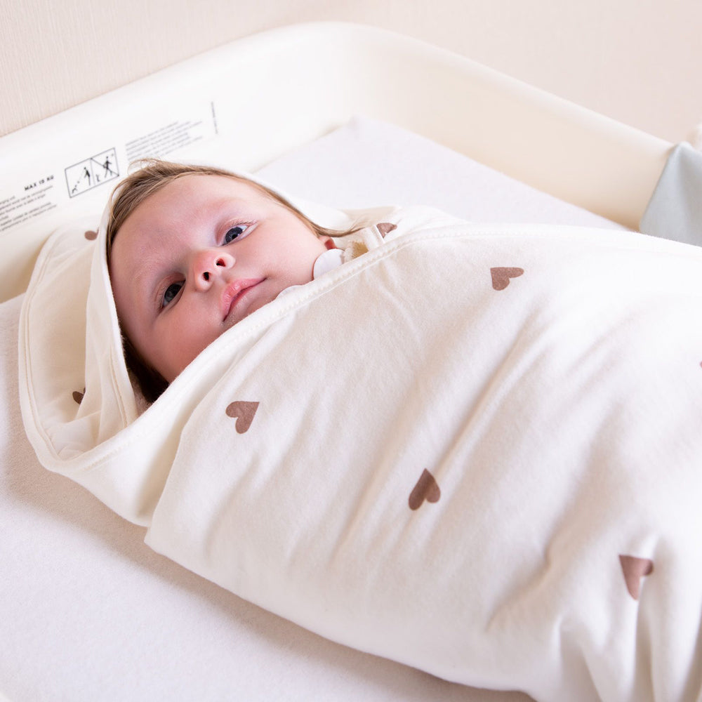 Prosop cu gluga si manusa de baie Childhome Jerse Frotir 80x80 cm, Inimioare