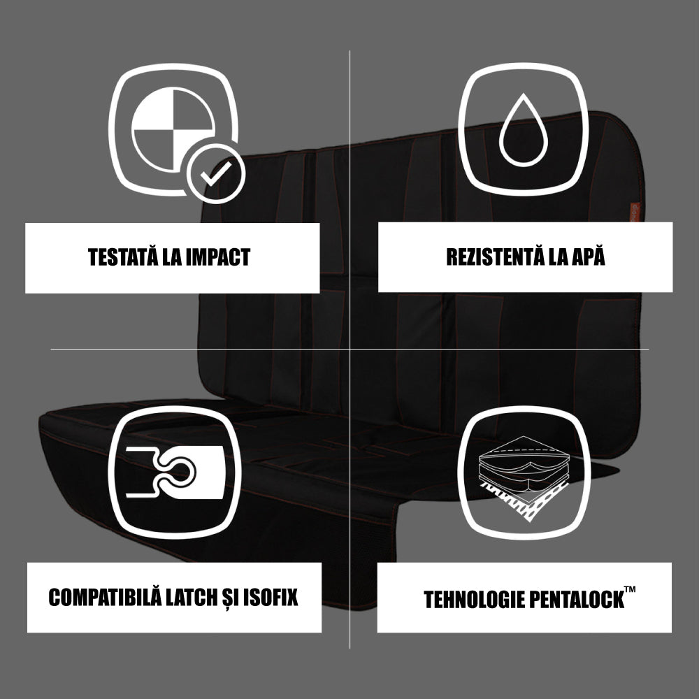 ,€¢ Acopera intreaga bancheta din spate, pentru o protectie completa a tapiteriei impotriva murdariei si zgarieturilor.