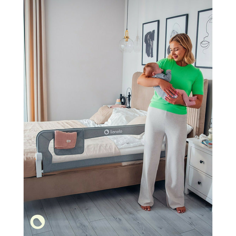 Protectie laterala pat, Lionelo, Eva, Cu buzunar accesorii, 150x35 cm, Conform cu standardul european de securitate BS7072, Gri