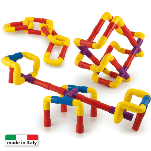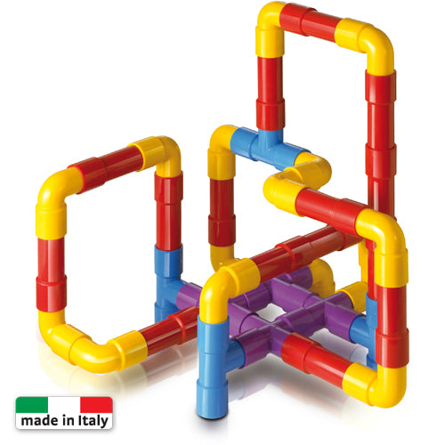 Copiii se vor distra construind structuri tridimensionale complicate prin interconectarea celor 4 tipuri diferite de tuburi in configuratii nesfarsite.' Vor crea cu usurinta labirinturi colorate de tuburi, conducte de apa, statii spatiale modulare si toate constructiile ingenioase pe care si le pot imagina.' Quercetti Tubation stimuleaza gandirea creativa si abilitatile de rationament ale copiilor in timp ce le dezvolta abilitatile motorii si constientizarea spatiala.