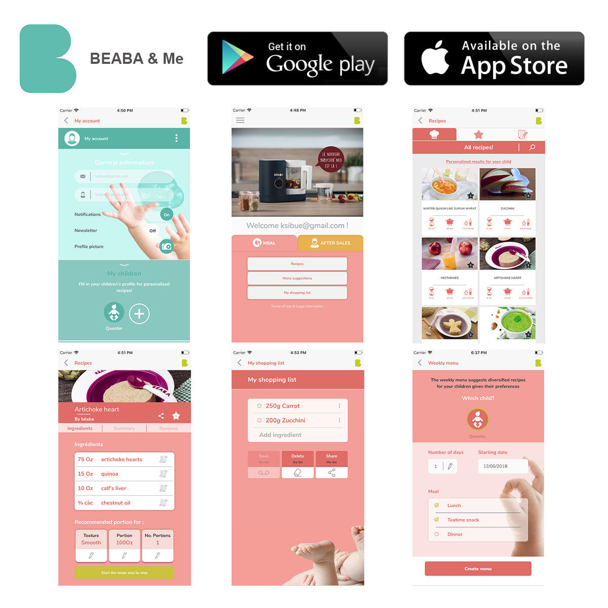 Babycook Neo, impreuna cu aplicatia BeabaME, ofera suport parintilor in pregatirea meniurilor personalizate. Aplicatie disponibila in App Store si Google Play.