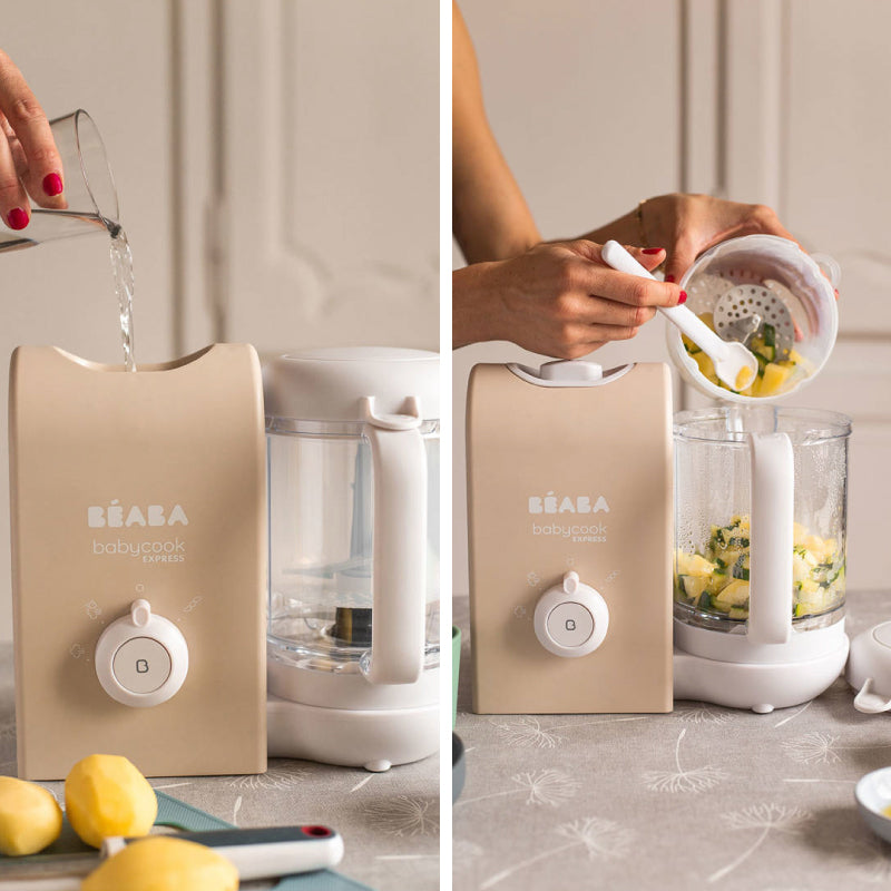 Robotul Beaba Babycook Express' Clay Earth pregateste o masa completa pentru bebe, de la antreu pana la desert, in doar cateva minute! Robotul 4 in 1 insoteste parintii pe parcursul diversificarii alimentatiei si le ofera mai mult timp pentru bebelusul lor.