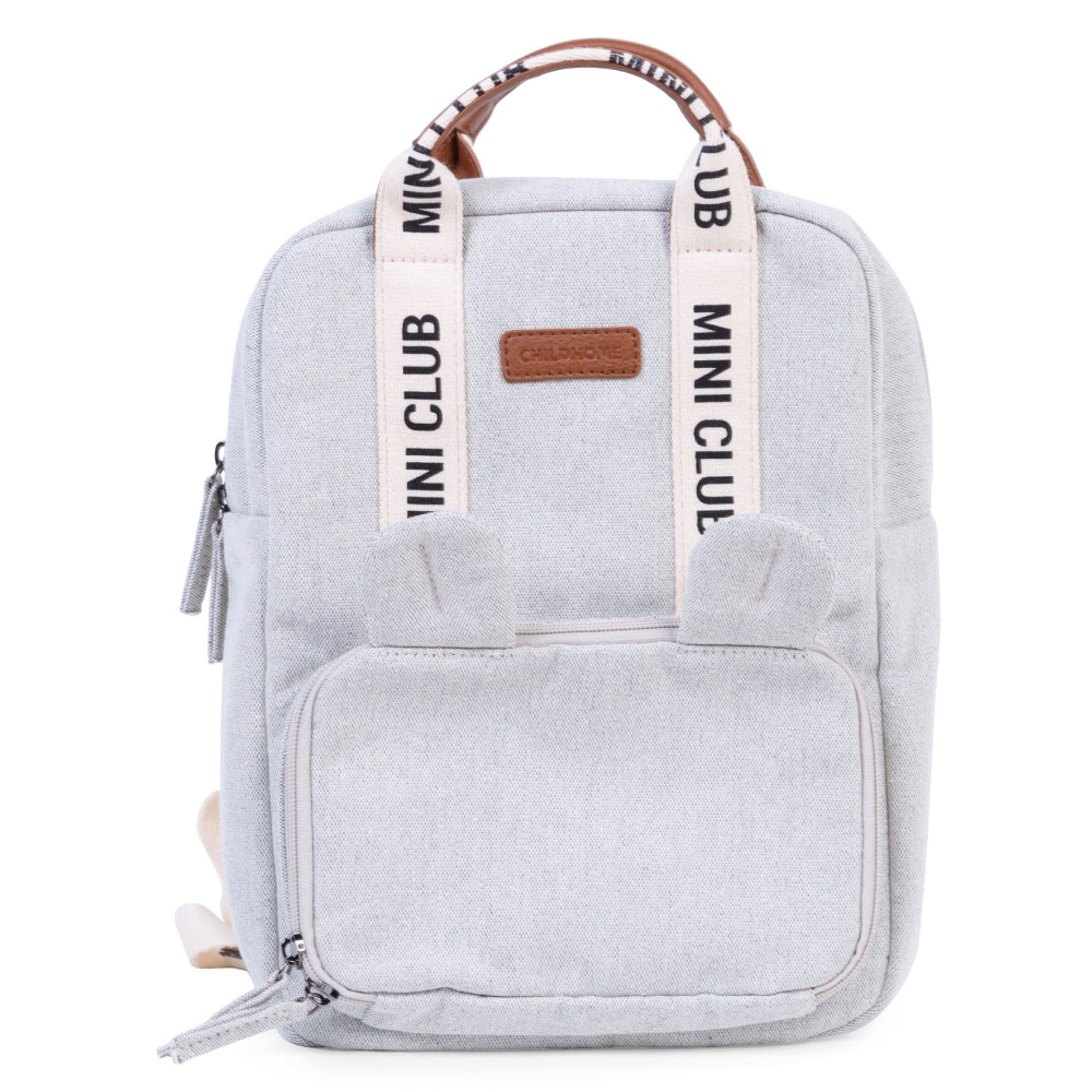 Rucsac pentru copii Childhome Mini Club Signature Alb, perfect pentru prescolari de la 3 la 5 ani.