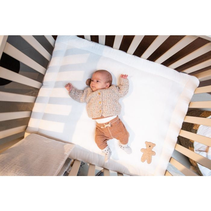Salteluta de joaca Childhome 75x95 cm, Jerse/Muselina Tedy, confectionata din bumbac de inalta calitate. Salteluta Childhome ofera un loc confortabil pentru joaca si relaxare si poate fi utilizata in patut sau pe alte suprafete.
