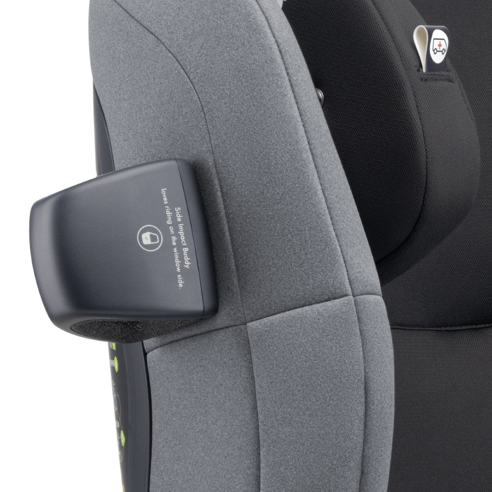 Sistem patentat de protectie laterala continua. Capul,' umerii si partile laterale sunt protejate in mod continuu, chiar si atunci cand tetiera este in cea mai inalta pozitie.