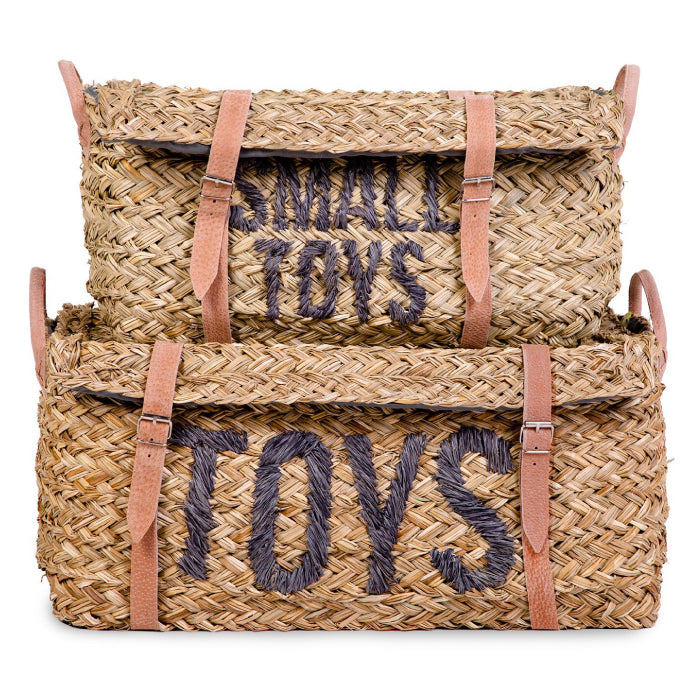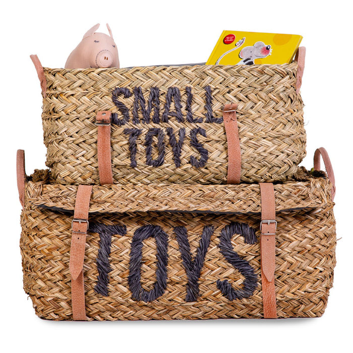 Set 2 cosuri depozitare din ratan Childhome, perfecte depozitarea jucariilor celui mic.