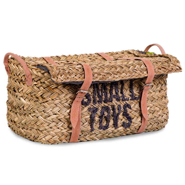 - Material: exterior: 100% iarba de mare; captuseala: 100% poliester; curele: 100% piele de porc.