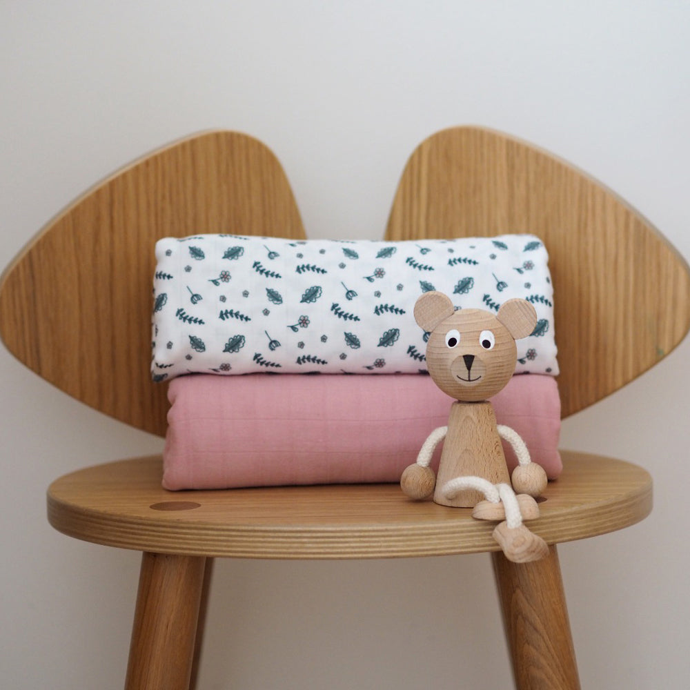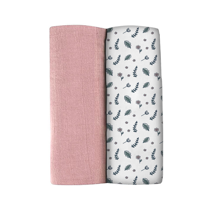 Set 2 Museline Beaba bumbac 120x120 cm Bridal Pink Flowery Countryside