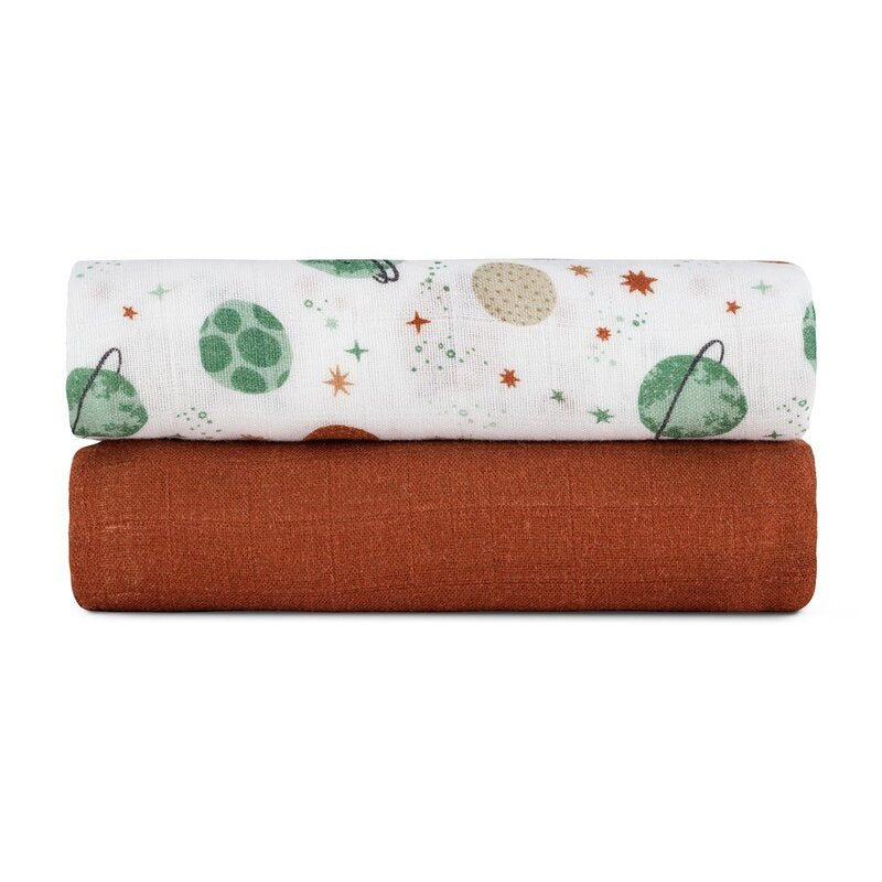 Set 2 scutece, Petite&Mars, Misty, Din muselina de bambus, Hipoalergenice, Dimensiuni mari, 120 x 120 cm, Certificate Oeko Tex Standard 100, Celestial Planets