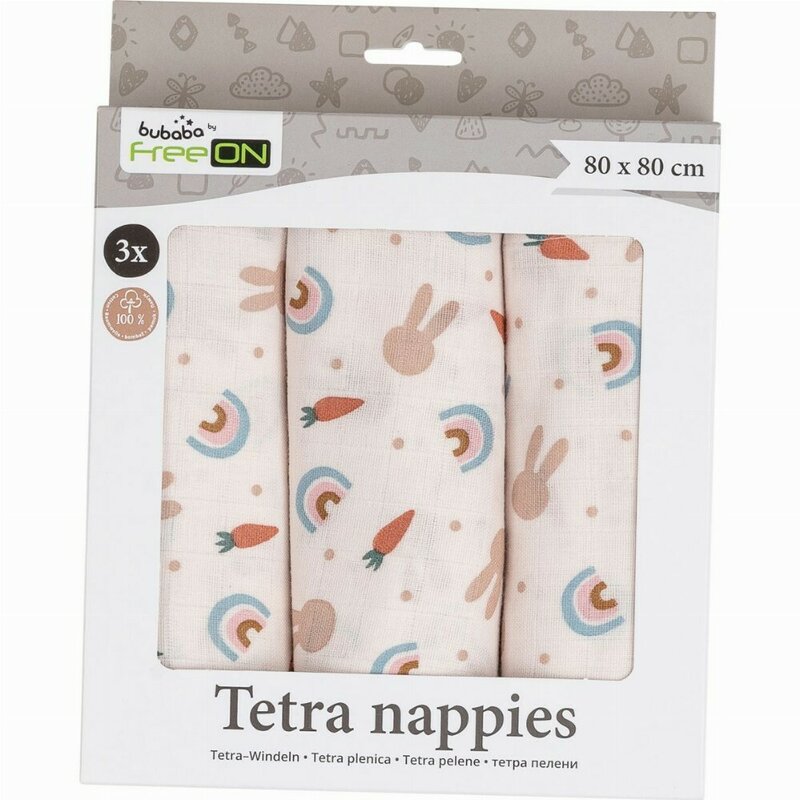 Set 3 Scutece Tetra Bubaba din Bumbac 80x80 cm Carrots and Rainbow