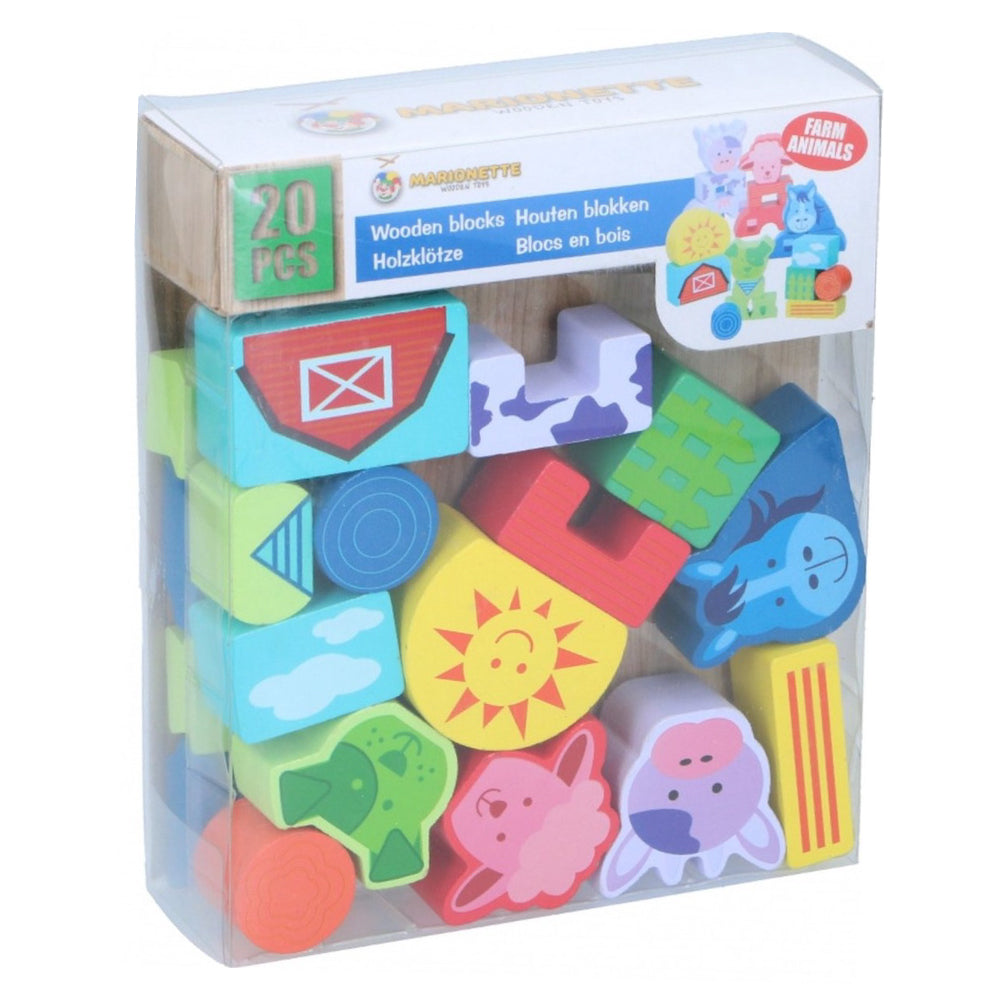 Caracteristici Set constructie din lemn Marionette animale domestice 20 piese: