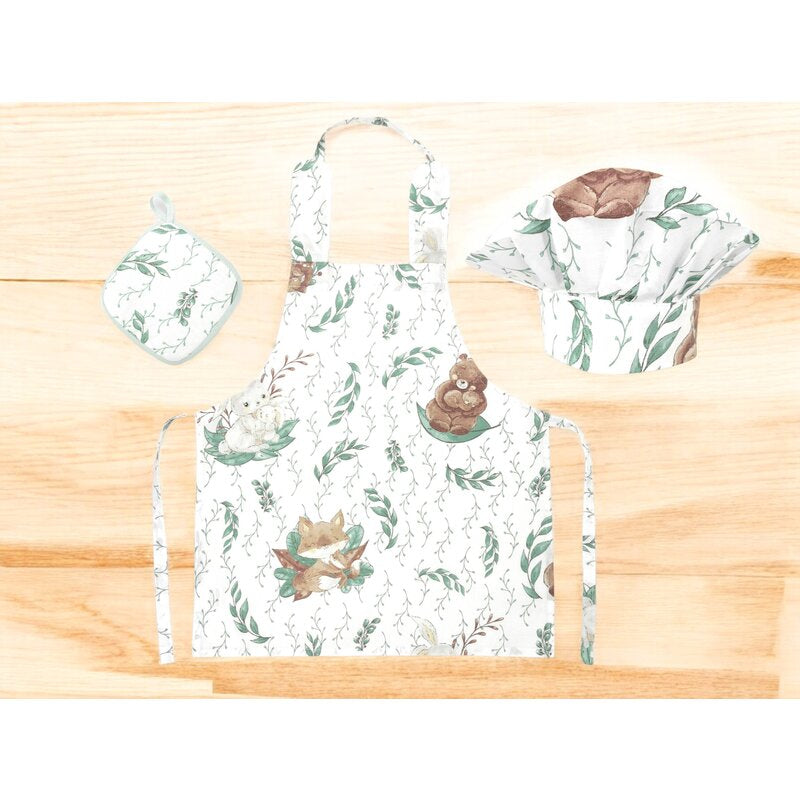 Set Micutul bucatar, MimiNu, Cu sort, o boneta si accesoriu pentru vase calde, Din bumbac certificat Oeko Tex Standard 100, Lulu Natural