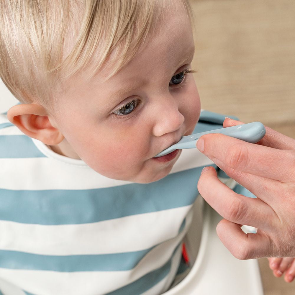 Descriere Set tacamuri Foodie Done by Deer Happy Dots Blue Prezentare generala Set tacamuri Foodie Done by Deer Happy Dots Blue este conceput pentru mesele copiilor, combinand functionalitatea cu un design jucaus. Set tacamuri Foodie Done by Deer Happy Dots Blue include tacamuri usor de manevrat si cu forme sigure, iar imprimeul Happy Dots de culoare albastra ii incurajeaza pe cei mici sa manance independent. Cu dimensiuni gandite pentru mainile copiilor, acest Set tacamuri Foodie Done by Deer Happy Dots Blue ofera control si confort la fiecare masa. Beneficii si caracteristici Tot ce ai nevoie pentru autonomie si confort la masa: Contine lingura, furculita si cutit in culoare albastra cu print Happy Dots. Margini rotunjite, soft, pentru o experienta sigura si placuta. Bine dimensionate pentru maini mici, usor de tinut si controlat. Material durabil si produs reciclabil la finalul ciclului de via ta. Continutul setului 1 x lingura 1 x furculita 1 x cutit Materiale si sustenabilitate Set tacamuri Foodie Done by Deer Happy Dots Blue este realizat din material rezistent, gandit sa reziste la utilizare zilnica si care poate fi reciclat, pentru un impact redus asupra mediului. Utilizare si intretinere Spala tacamurile inainte de prima utilizare si dupa fiecare masa. Designul ergonomic si greutatea echilibrata ajuta copilul sa prinda si sa manevreze usor tacamurile, acasa sau in deplasare. Specificatii Tip: set tacamuri pentru copii (lingura, furculita, cutit) Caracteristici: margini rotunjite, bine dimensionate pentru maini mici Culoare: blue cu print Happy Dots Sustenabilitate: produs reciclabil De ce sa alegi acest produs Daca vrei tacamuri confortabile, sigure si atragatoare, Set tacamuri Foodie Done by Deer Happy Dots Blue este alegerea potrivita pentru primele mese independente.