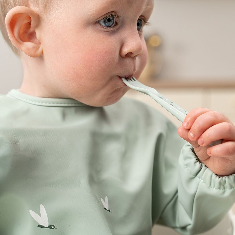 Descriere Set tacamuri Foodie Done by Deer Happy Dots Green Prezentare generala Set tacamuri Foodie Done by Deer Happy Dots Green este conceput pentru mesele copiilor, combinand functionalitatea cu un design jucaus. Set tacamuri Foodie Done by Deer Happy Dots Green are forme prietenoase si margini rotunjite, iar imprimeul Happy Dots de culoare verde ii incurajeaza pe cei mici sa manance independent. Cu dimensiuni gandite pentru maini mici, acest Set tacamuri Foodie Done by Deer Happy Dots Green ofera control si confort la fiecare masa. Beneficii si caracteristici Tot ce ai nevoie pentru autonomie si confort la masa: Contine lingura, furculita si cutit in culoare verde cu print Happy Dots. Margini rotunjite, soft, pentru o experiena sigura si placuta. Bine dimensionate pentru maini mici, usor de tinut si controlat. Material durabil si produs reciclabil la finalul ciclului de viata. Continutul setului 1 x lingura 1 x furculita 1 x cutit Materiale si sustenabilitate Set tacamuri Foodie Done by Deer Happy Dots Green este realizat din material rezistent, gandit pentru utilizare zilnica si care poate fi reciclat, contribuind la un stil de viata responsabil. Utilizare si intretinere Spala tacamurile inainte de prima utilizare si dupa fiecare masa. Designul ergonomic si greutatea echilibrata ajuta copilul sa prinda si sa manevreze usor tacamurile, acasa sau in deplasare. Specificatii Tip: set tacamuri pentru copii (lingura, furculita, cutit) Caracteristici: margini rotunjite, bine dimensionate pentru maini mici Culoare: green cu print Happy Dots Sustenabilitate: produs reciclabil De ce sa alegi acest produs Daca vrei tacamuri confortabile, sigure si atragatoare, Set tacamuri Foodie Done by Deer Happy Dots Green este alegerea potrivita pentru primele mese independente.