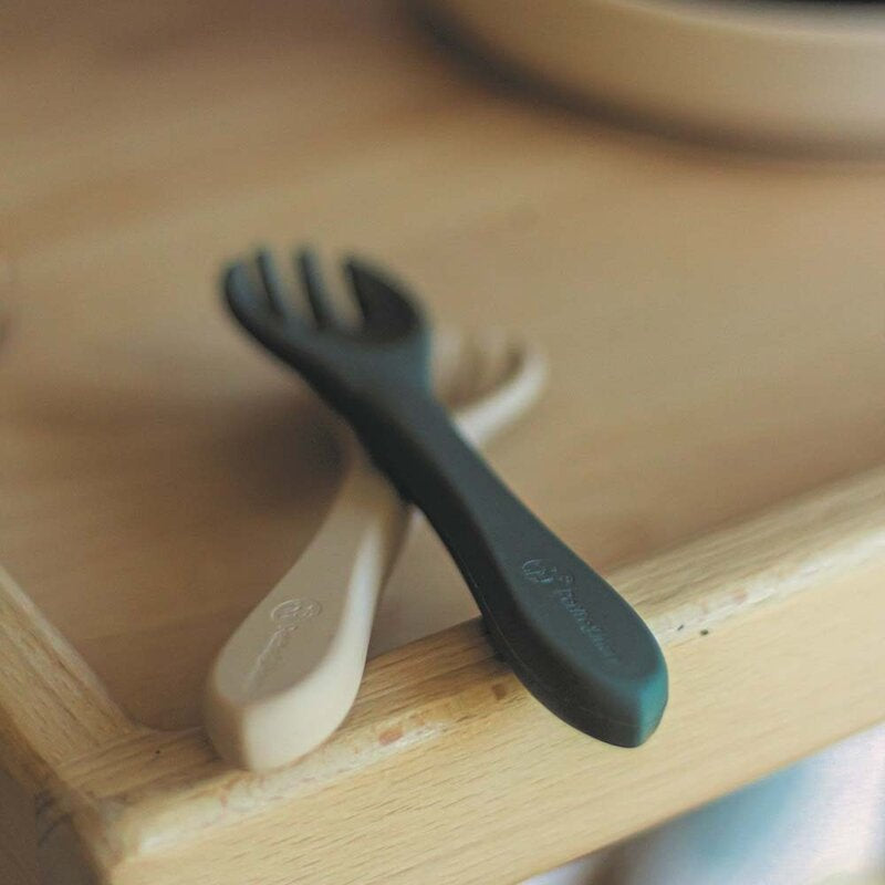 - Setul format dintr-o furculita si o lingura este realizat integral din silicon alimentar fara BPA. Acest lucru ii permite copilului dumneavoastra sa manance atat alimente calde, cat si reci cu tacamurile. Siliconul flexibil face tacamurile ideale pentru gingiile sensibile ale unui copil mic. Tacamurile sunt potrivite pentru bebelusii de la varsta de 6 luni care sunt introdusi intr-o dieta extinsa si cei care deja invata sa manance cu succes singuri. Formele rotunjite si dimensiunile mici le fac mai usor de luat si de mancat pentru cel mic.