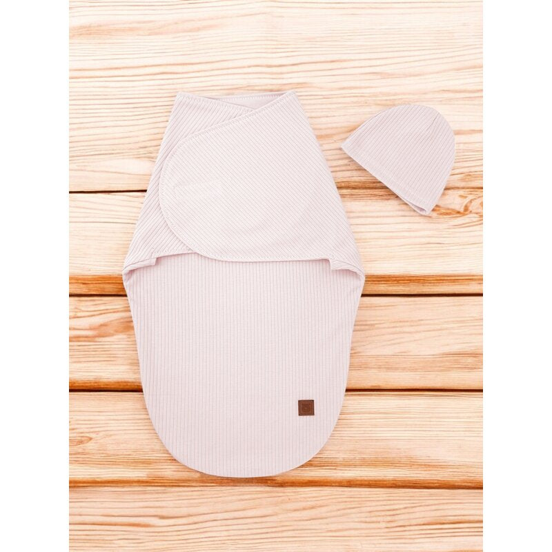 Sistem de infasare si caciulita, MimiNu, Pentru bebe, 0 - 3 luni, Leo, Din bumbac interlock certificat Oeko Tex Standard 100, Soft Powdery Pink