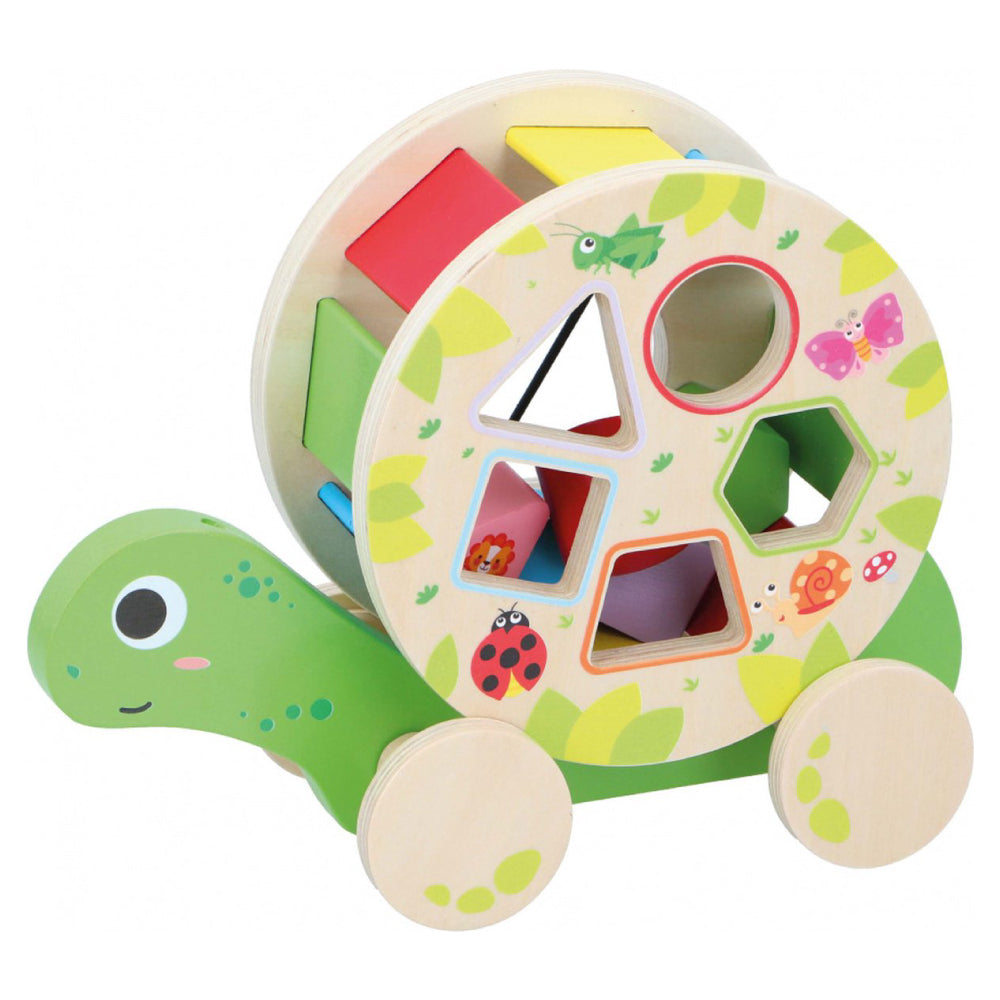 Copiii isi pot exersa abilitatile motorii si gandirea logica prin sortarea formelor in orificiul potrivit din carapacea testoasei. Dragalasa testoasa are in plus roti si poate fi scoasa la plimbare cu ajutorul unei sfori mici.