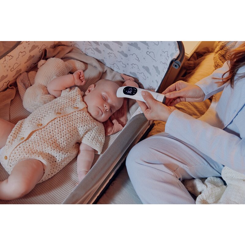 Lionelo FeverScan este un termometru cu infrarosu non-contact, ideal pentru orice mama, fiind un dispozitiv precis si rapid, care masoara temperatura corpului la copii si adulti in doar o secunda. De asemenea, poate oferi citiri de temperatura pentru mediul inconjurator si alimente. Cu 4 moduri de operare, FeverScan este programat sa raspunda optim cerintelor specifice fiecarui tip de masuratoare, tinand cont de variatiile de temperatura la masuratorile din ureche si frunte, atat la copii, cat si la adulti. Lumina integrata si modul silentios permit masuratori linistite pe timp de noapte, fara a trezi copilul.