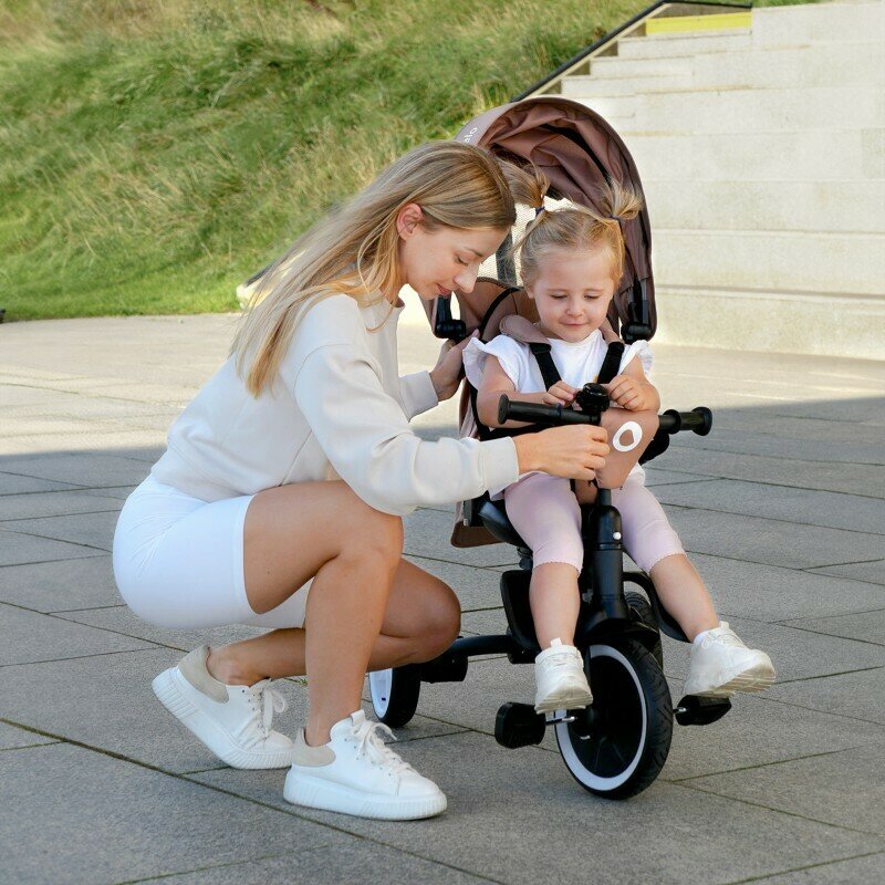 Lionelo Tris Plus este un produs 2 in 1 care combina functiile unui carucior bicicleta si ale unei triciclete. Este conceput pentru copii de la aproximativ 9 luni pana la aproximativ 5 ani sau pana cand ating o greutate de 25 kg. Datorita designului sau modular, tricicleta se adapteaza pe masura ce copilul creste. Dispune de doua suporturi de picioare confortabile pentru copiii mai mici si mai mari, care pot lua o pauza, in timp ce functia de roata libera permite pedalarea fara a influenta viteza de deplasare. Scaunul pivotant la 360 grade cu reglare a inclinarii spatarului ofera flexibilitatea de a personaliza setarile scaunului in functie de preferintele copilului. Rotile mari si rezistente la perforare din PU se descurca usor pe diverse terenuri. Tris Plus se asambleaza cu un clic, eliminand necesitatea unor unelte suplimentare. Cand produsul este pliat, este compact, asigurand o depozitare convenabila.