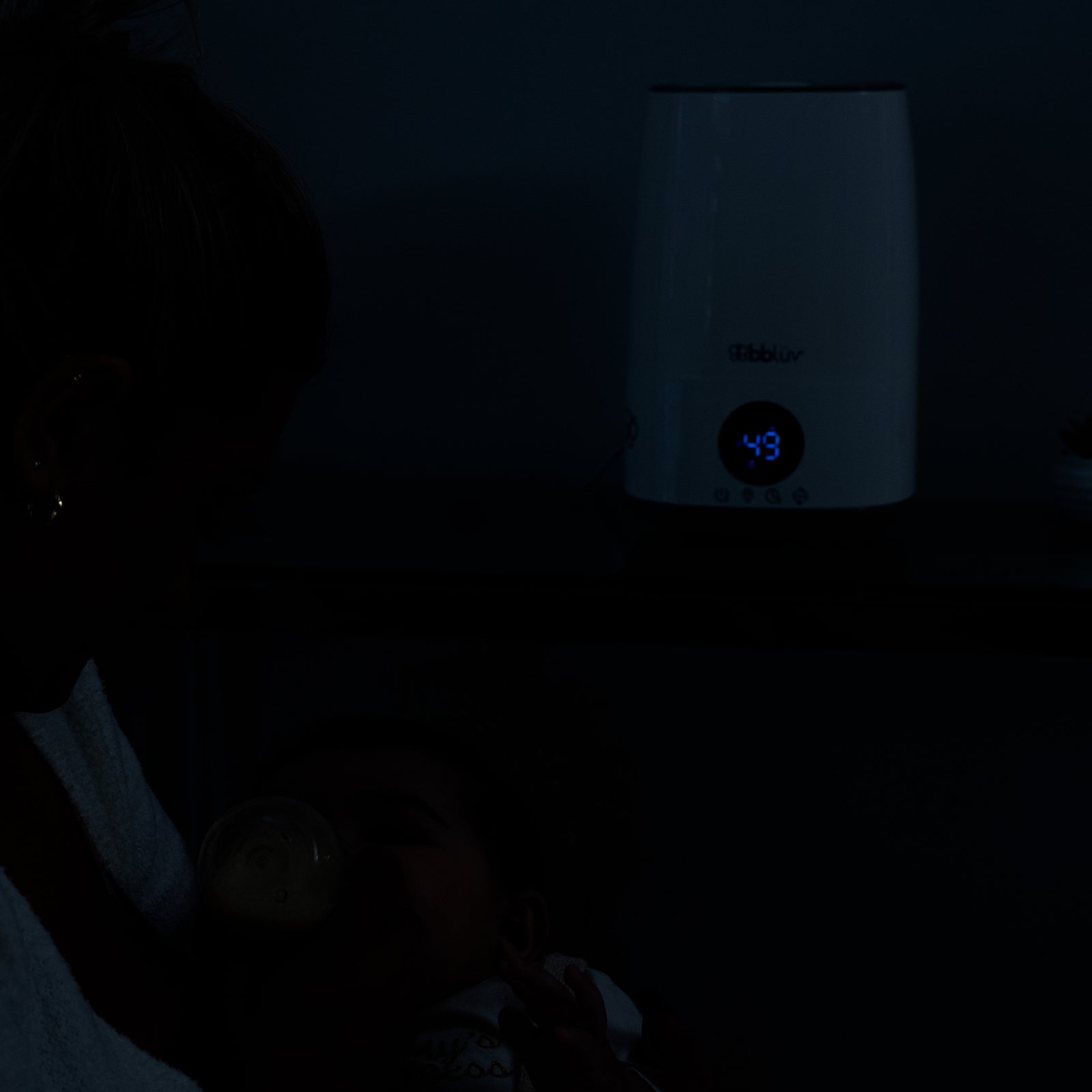 - Umido regleaza nivelul de umiditate din camera bebelusului, difuzand in acelasi timp un abur racoros si linistitor pentru bunastarea acestuia.