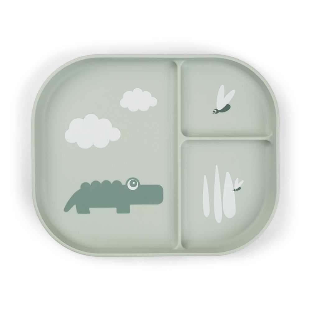 Daca vrei ordine in farfurie, stabilitate pe masa si un design care ii incanta pe cei mici, Farfurie compartimentata Foodie Done by Deer Croco Green este alegerea potrivita pentru mesele de zi cu zi.