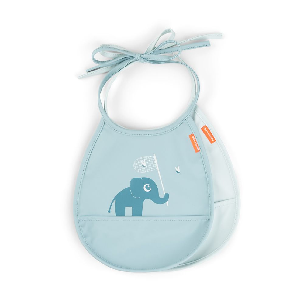 Daca vrei protectie eficienta, curatare rapid a si un look jucaus, Set 2 Bavetici cu buzunar Done by Deer Elphee Blue ofera tot ce ai nevoie pentru mese fara griji.