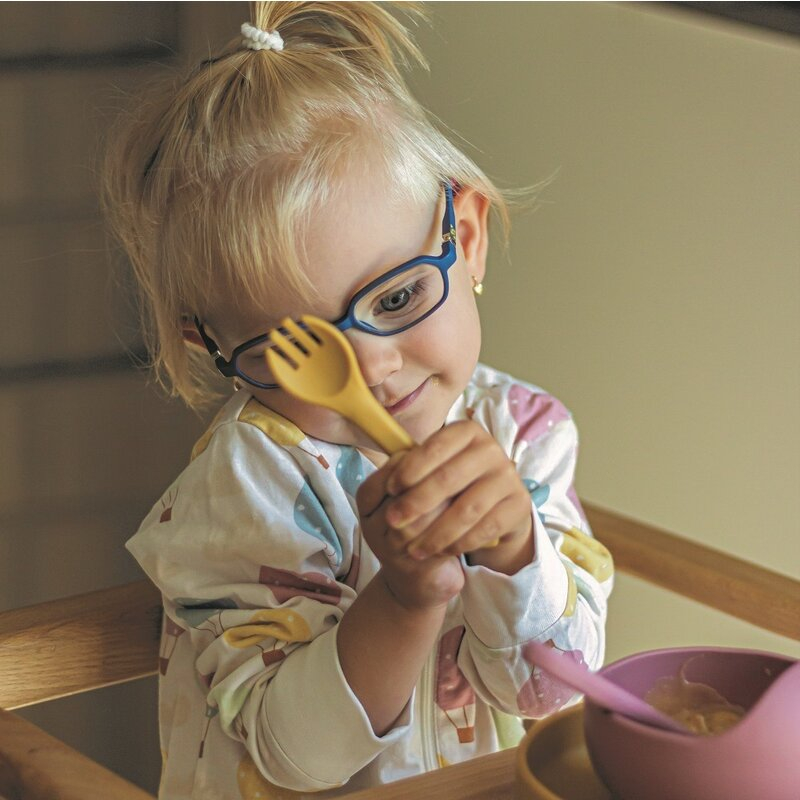 • Setul format dintr-o furculita si o lingura este realizat integral din silicon alimentar fara BPA. Acest lucru ii permite copilului dumneavoastra sa manance atat alimente calde, cat si reci cu tacamurile. Siliconul flexibil face tacamurile ideale pentru gingiile sensibile ale unui copil mic. Tacamurile sunt potrivite pentru bebelusii de la varsta de 6 luni care sunt introdusi intr-o dieta extinsa si cei care deja invata sa manance cu succes singuri. Formele rotunjite si dimensiunile mici le fac mai usor de luat si de mancat pentru cel mic.