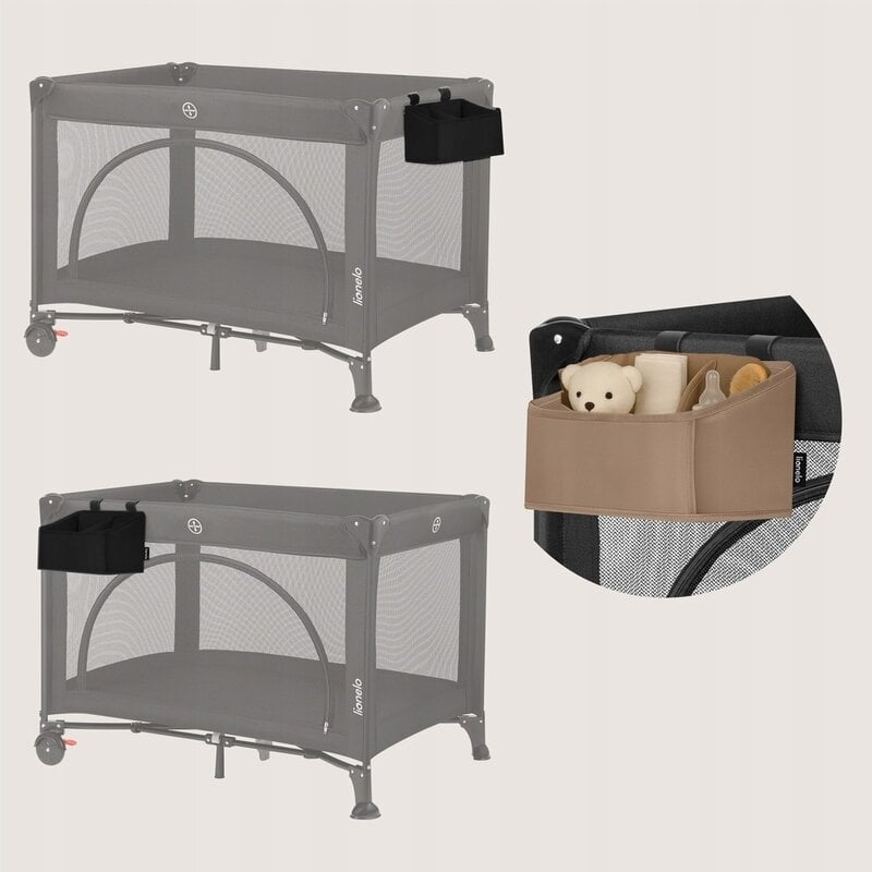 Sidepocket este util nu doar lângă pătuț – îl poți folosi și lângă masa de înfășat, în dulap sau pe raft. Se potrivește perfect cu pătuțurile de voiaj, paturile adiționale și țarcurile Lionelo.