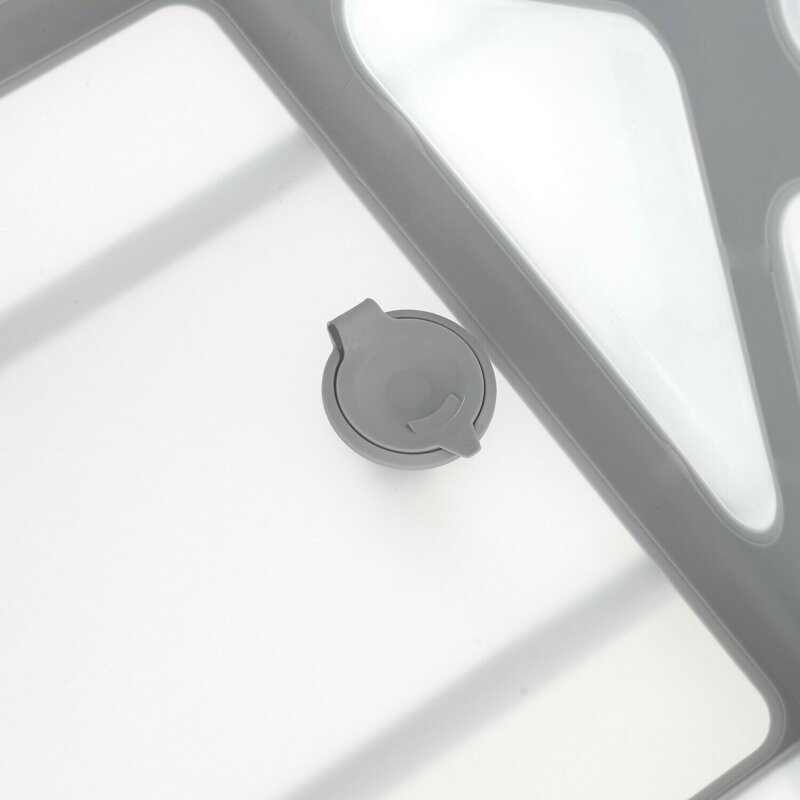 Include un dop din silicon moale amplasat la baza pentru o golire usoara, fara contact direct cu bebelusul.