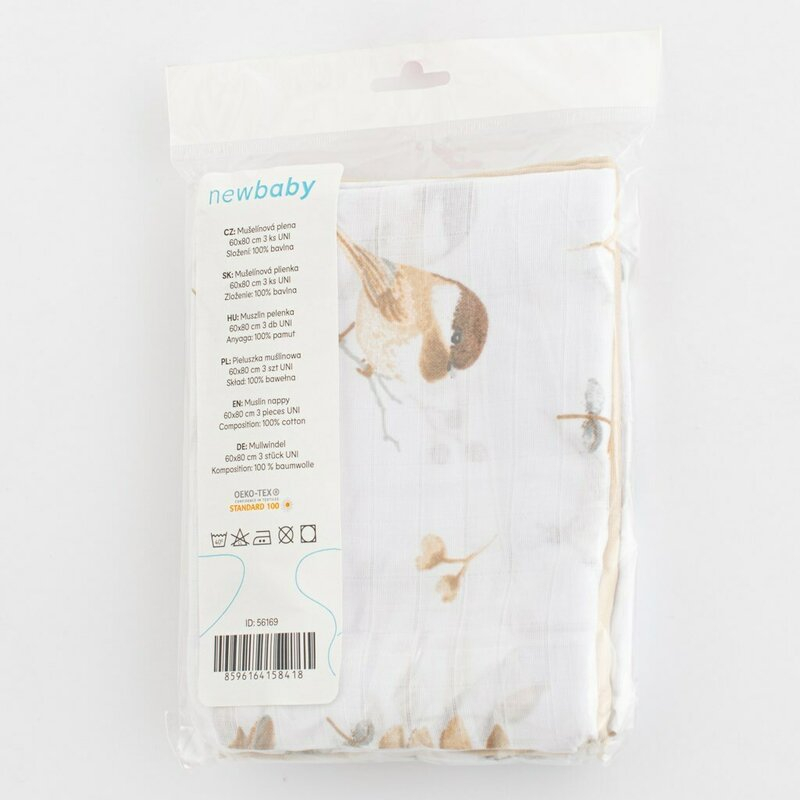 Set 3 scutece, New Baby, Multifunctionale, Din bumbac 100%, Material certificate Oeko Tex Standard 100, 70x80 cm, Multicolor, Uni