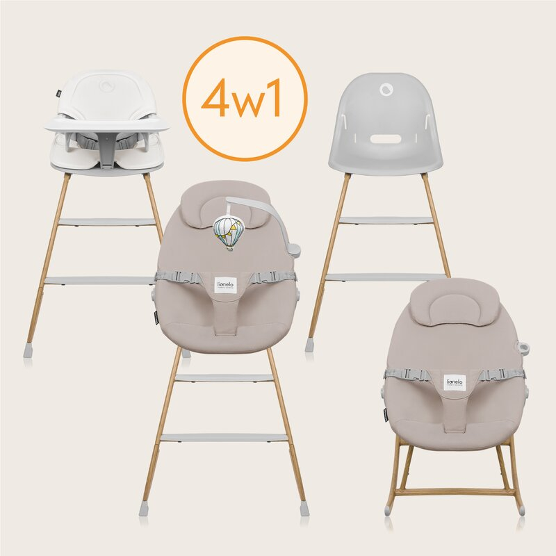 Set balansoar si scaun de masa, Lionelo, Dalia, Scaun cu 2 suporturi pentru picioare, Cu tavita, Balansoar 4 in 1 cu inaltime reglabia si bara cu jucarii, Conform cu EN14988, EN1888-1 EN1888-2, EN1466
