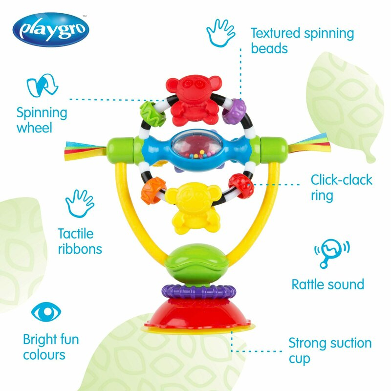 Jucaria rotativa pentru scaunului de masa il va distra pe bebelus cand ia masa inauntru sau afara.