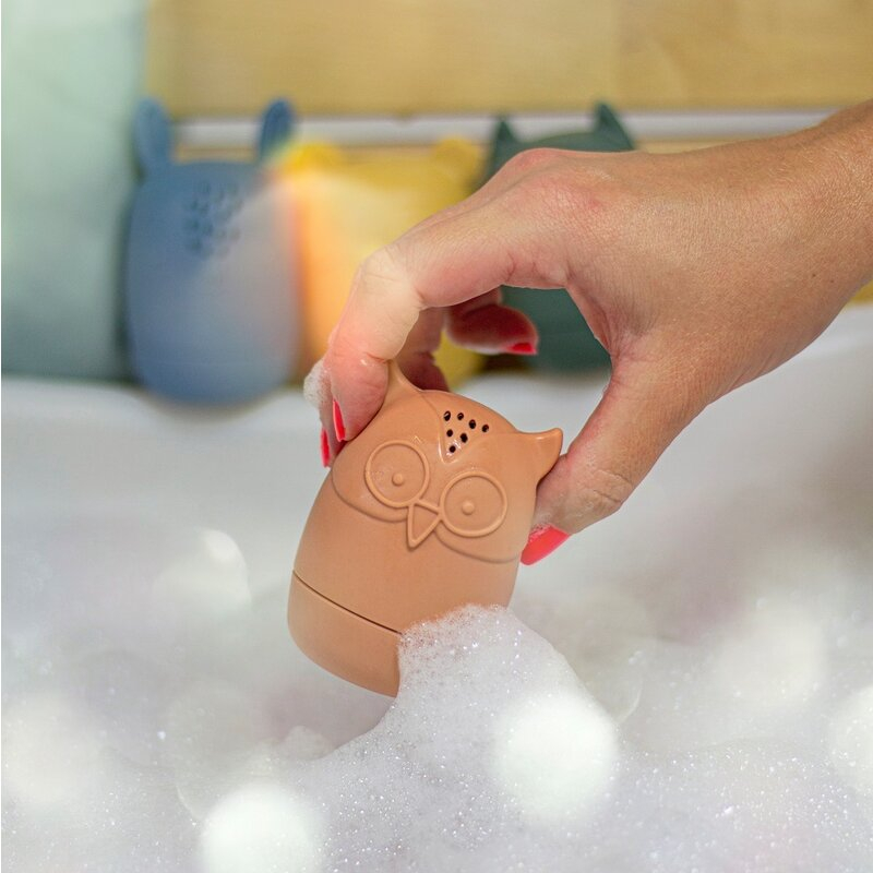 Setul de jucarii AMIGOS este format din 4 figurine de animale: o bufnita, un iepure de camp, o pisica si un panda. Vor deveni prietenii de nedespartit ai copilului tau. Indiferent ca te afli in baie de acasa, la piscina sau langa apa in vacanta, le poti lua cu tine pentru ca sunt mici si la indemana. Fiecare dintre jucarii are gauri prin care se poate turna apa. Acest lucru va asigura o mare distractie, precum si un exercitiu eficient de strangere cu mainile mici ale copilului. Jucariile trezesc interesul copiilor, le concentreaza atentia si ii invata sa gandeasca creativ. Ele pot fi desurubate in doua parti (superioara si inferioara), facandu-le usor de spalat si uscat.